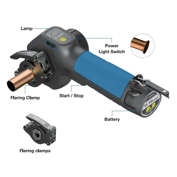 Lithium Flaring Tool KM-E800A For 1/4",3/8",1/2",5/8" (16mm),3/4" (19mm) Optional Flaring Clamps: 6mm,5/16" (8mm),9mm,10mm,12mm)